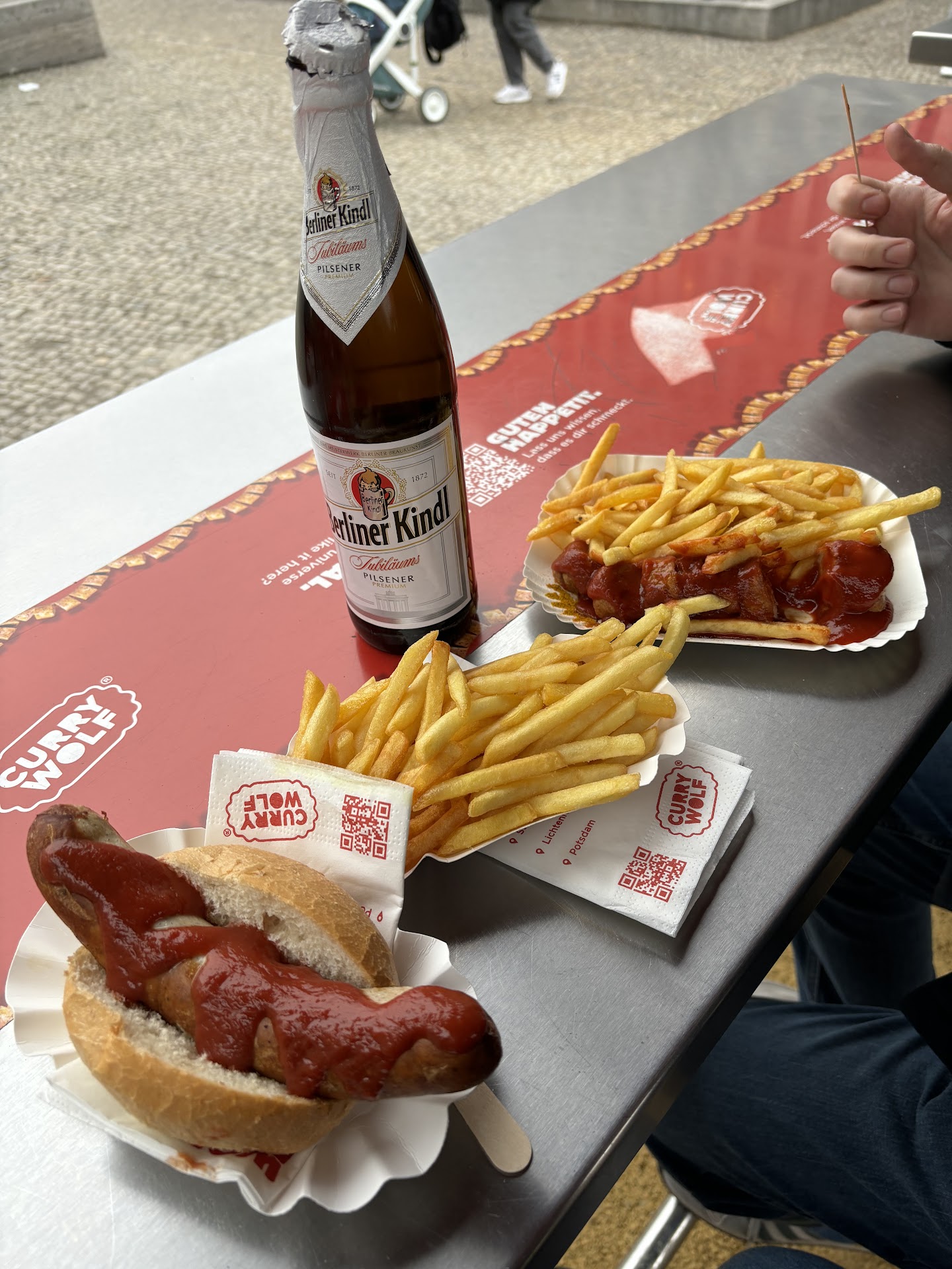 Read moreFor an open air kiosk in the middle of the road it was actually very inviting with lots of places to sit and quite a crowd ordering food or sitting around. I got the currywurst and chips (meal deal 2 but for an extra 50c you can upgrade your Fanta to a beer). The sausage was nicely cooked and the sauce was decent but not special. My chips were slightly hard and cold but those are the dangers when getting food from a small 1 man currywurst operation. My girlfriend decided on the brawtwurst and chips, her chips were a lot fresher and warmer and again the sausage was good but nothing special. Worth a bite if youâre hungry and right beside...