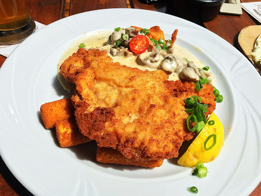 The food here has always been very good and I'm happy to say it's even better now. I had the breaded pork schnitzel with warm potato salad. My wife had the Ku'damm Burger with fries. Both dishes were great. They do an excellent Schnitzel, crispy outside, not greasy at all and the meat is tender and delicious. A real stand out was the potato salad. It was freshly made in-house and delicious.