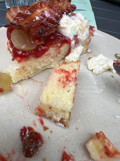 Diese Veränderungen könnte ich noch verschmerzen. Was allerdings zunehmend stört, ist die Art, wie Gäste betrachtet werden, wenn sie zu zweit zwei große Brotkörbe und eine Hauptspeise bestellen. Mehrfach hatte ich das Gefühl, dass Blicke signalisierten: "Das wollen Sie wirklich alles essen?" Anfangs dachte ich, das sei eine Ausnahme. Doch inzwischen scheint es zum Standard geworden zu sein. Ich weiß nicht, ob es zur Firmenphilosophie gehört, kräftigeren Menschen zu suggerieren, dass sie lieber ins Fitnessstudio gehen sollten, als ein Frühstück mit zwei Brotscheiben zu bestellen. Denn viel mehr ist es nicht mehr – gerade mal ein paar grob geschnittene Keilstücke Brot im Korb. 6 Gestapelte Pancakes aus purem Zucker ist natürlich ein gesundes normales Frühstück. Das kann ich ruhig essen versteht sich. Ich fände es schöner wenn ich weiß dass ich auch 20 Brotkörbe bestellen kann, ohne dass das kommentiert wird.