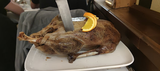 Read moreVORWEG, wir waren dort zum Gänseessen und hatten 2 ganze Gänse mit Grün- und Rotkohl sowie Kartoffelklöße. Der Kellner kam sodann an Tisch und fragte sofort, ob ein Apperetiv gewünscht wird. Es wurde keine Getränkekarte gereicht, so wie eigentlich üblich ist. Erst auf Nachfrage wurde uns die Getränkekarte gereicht! Das Essen wurde alles frisch zubereitet und war sehr lecker. Pro Gans 99,90 EUR (1 Gans = 4 Pers.). Nach dem Essen kam der extrem Geschäftstüchtige und nette Kellner mit einem Tablet worauf 4 verschiedene Sorten von Nachtisch in kleinen Gläsern abgefüllt waren. Er schilderte, in welchem Glas welcher Nachtisch ist und suggerierte so, als wenn der Nachtisch vom Haus ist bzw. im Angebot incl. war! Ein Preis für den Nachtisch wurde nicht genannt! Erst auf Nachfrage von uns wurde der Preis genannt!