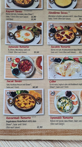 What a great menu, so delicious and also healthy and presented wonderfully. Great seating and open views. We are from Australia and are pleased to find this Turkish German destination, which is also family friendly and with a great host. Please enjoy the menu and cabinet of treats as we did. We are only 3 days into our trip to Berlin l, so we will definitely be back here in...