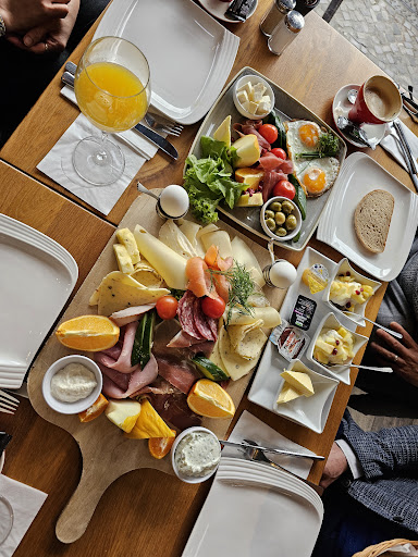 Wir haben uns fĂŒr das FrĂŒhstĂŒck fĂŒr zwei entschieden und uns wurde eine riesige, sehr liebevoll angerichtete Platte serviert. Alles sah sehr frisch und qualitativ gut aus. Zudem waren die Brötchen sehr frisch und die hartgekochten Eier punktgenau gekocht, sodass sie nicht trocken schmeckten. Auch der frischgepresste Orangensaft war ein Gedicht, da er wunderbar duftete.
