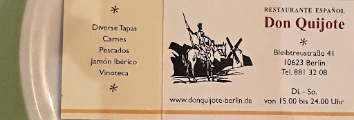 Read moreAm Sonntag, den 06.04.2025, haben wir bei Don Quijote in der Bleibtreu Straße 41 in Berlin einen Abend erlebt, der uns noch lange in Erinnerung bleiben wird. Beim Betreten des Lokals war sofort spürbar, dass hier mit echter Leidenschaft und Hingabe gearbeitet wird – eine Atmosphäre, die man selten erlebt. Besonders beeindruckt hat uns der „Anayon Cariñena 2020 Tinto con Crianza de la Denominación de Origen Cariñena, añada 2020“. Dieser Wein war ein echtes Highlight des Abends – vollmundig, elegant und mit einem unglaublich faszinierenden Geschmack, der jeden Schluck zu einem Erlebnis machte. Auch wenn wir nur eine kleine Auswahl an Speisen bestellten, war der Wein der klare Star des Menüs. Ein weiterer Grund für unsere Begeisterung war die Herzlichkeit und Professionalität des gesamten Teams. Die Besitzerin, die wir als echtes Original und Herzstück des Lokals empfinden, verströmte durch ihre Offenheit, Ehrlichkeit und entspannte Art sofort ein Gefühl von Geborgenheit und Gastfreundschaft. In stressigen Momenten behielt sie stets Ruhe und machte deutlich, wie sehr sie ihren Beruf lebt – ein Vorbild, wie man es in der Gastronomie haben sollte. Kurzum: Wer auf der Suche nach einem Ort ist, an dem exzellenter Wein, authentische Gastfreundschaft und ein Hauch von spanischem Flair aufeinandertreffen, sollte unbedingt bei Don Quijote vorbeischauen. Wir freuen uns jetzt schon auf den nächsten Besuch, um noch mehr als nur Tapas und Wein zu genießen. Vielen Dank an das gesamte Team für diesen...