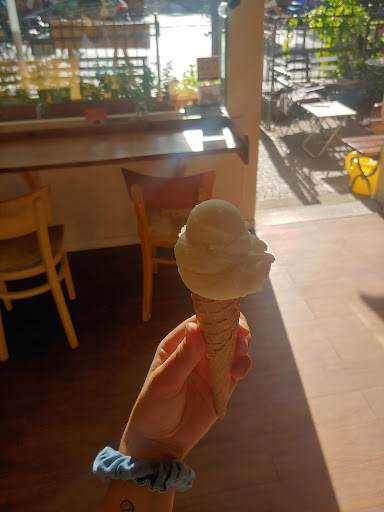 Dayum what a great café. Wholesome atmosphere with great places to sit inside and out. The people working there (momo and Gina I believe) very welcoming, friendly and lovely. Their ice was amazing (of course some flavors better than others, also depending on your personal taste). I loved the refreshing pineapple sorbet. Coffee was good, solid. The brownie and the banana bread were amazing. Truly delicious. Very nice, cozy interior design and beautiful atmosphere outside. Also the location is very calm and nice. I can only recommend this place and invite you to have a good experience. Until now, to me, one of the best ice creams I've had in...