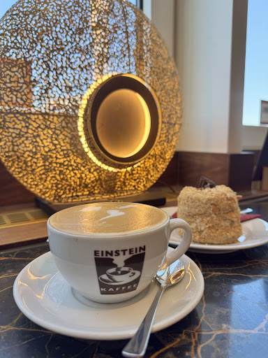 One of the rudest services in the whole city of Berlin. The baristas were kind but the waitress is a very unfriendly person, who does not even look at your face while ordering. Once my coffee was ready, she literally brought the glass and hit it on the table like she was unvoluntarily feeding an animal. I am so schocked. I wish I had read the reviews before coming here; unfortunately this is nothing to do with the usual Einstein Kaffee quality we are used to. The very unfriendly waitress then went back to the cashier area and continued fiddling with her phone. There is absolutely no reason for treating customers like this. Also, you need to order from the table here, so the coffee prices are a little higher. The “large” iced coffee is the “small” size you get in other Einstein Kaffees. The glass is not higher than your regular sunglasses, which is around 250-300ml. No ice cubes in it. Just cold milk. I do not recommend this place if you want to feel welcomed. Before leaving I reported the situation to the very friendly and kind barista....