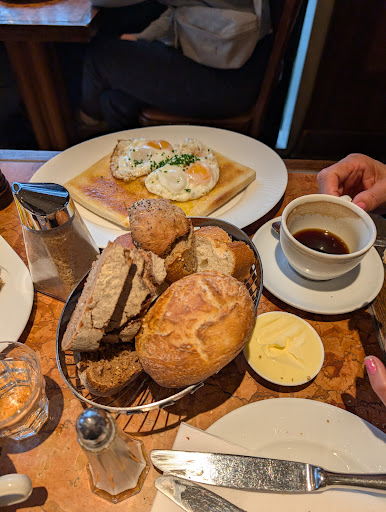 The in-house baked bread was a standout, and the coffee proved to be a satisfying complement to the meal. Despite the overall positive experience, the service left something to be desired, as our waitress came across as pushy, particularly when it came to tipping.