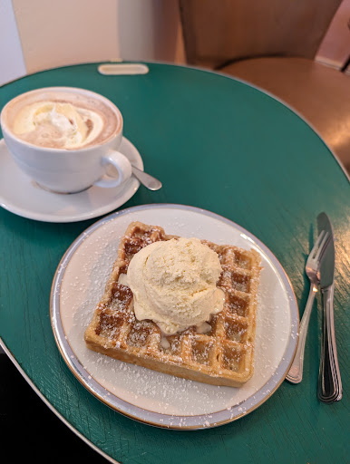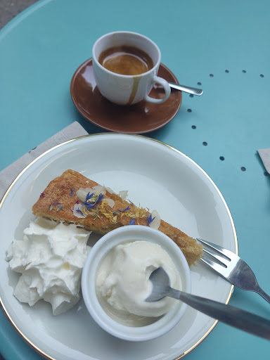 Read moreAbsolut unfreundlicher Service und überteuert für die Miniportion. Leider heute hier ein nicht so schönes Erlebnis gehabt. Empfangen wurden wir von einer Frau, die sich gleich sehr ungeduldig gezeigt hat, obwohl ansonsten keine Kunden anwesend waren. Wir wollten Belgische Waffeln, da wurde irgendwas hingebrabbelt, dass sie hier alleine ist und es deswegen nicht geht, wenn nicht noch spontan jemand kommt (hä?). Haben uns dann für den Mandelkuchen entschieden. Die Stücke, die wir bekommen haben waren derart klein (knapp 4 EUR, siehe Bild), dass wir uns genötigt gefühlt haben es anzusprechen. Da sind wohl sooo viele Mandeln drin, dass man so kleine Stücke schneiden muss, war die Erklärung. Als wir dann noch den Kaffee serviert bekamen, wurden wir nochmal angeschnauzt, dass sie hier "ehrenamtlich" arbeitet und sowieso alles mies ist. Erstmal ist das kein Ehrenamt und unabhängig davon entschuldigt das auch nicht den schlechten Service. Sorry, da kommt man bestimmt nicht wieder. Der Kuchen war ok (P.S. lieber die unnötigen Blumen auf dem Kuchen weglassen, wenn man sparen will), das Eis war geschmacklich eher fade und nicht fest genug, der Espresso auch...