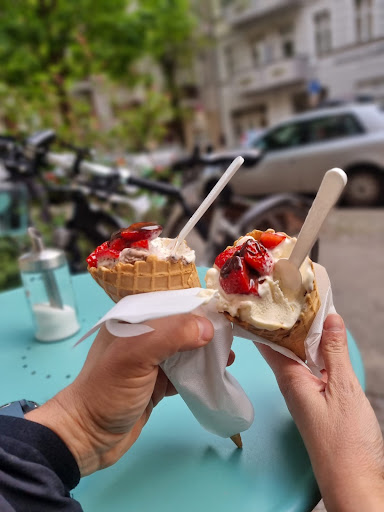 Don't go here!! This place has really TERRIBLE service. After waiting for a long time in line because there was only one person serving at the counter the guy served me an ice cream with two very small scoops and then went on to serve two other customers before returning my change. There's a small area in front of the counter so I had to wait and have people shuffle around me until he gave me my change. When I asked for my change he just grinned, didn't look at me and then went on to serve the next customer. The ice cream and service is much better at eismanufaktur close to Leopoldplatz if you're looking for good ice cream and good service. Don't waste your time here!