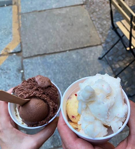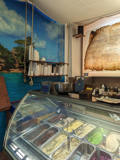 Read moreI love Eispiraten and consider it the best ice cream joint in Friedrichshain. I find the pirate theme cute, and enjoy watching the little tots trying to steer the ship. Every flavor I've tried is delicious, but I especially like Mohn Marzipan and Milchreis. One scoop in a cone costs 1.20€, which is a .10 cent increase from last year. The workers are generally pretty friendly, unless you pay with more than 6 coins like I did. This place often has a long line on weekends and sunny days, but if you come early enough, you won't have to wait so long. It would be cool if they greeted me and took my order like a movie pirate, but I know that's asking for too much. Seriously delicious ice cream though.
