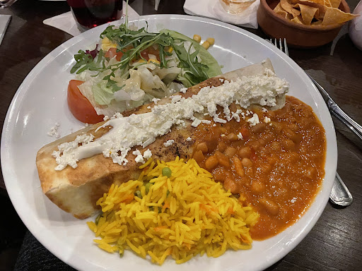 Read moreAnother pseudo-Mexican restaurant. The food is eatable but it has nothing to do with Mexican food. The cooks don't even try. My vegetarian burrito could have come from a Lebanese restaurant - I would not have been able to tell the difference. The ambiente is nice indoors and outdoors and the service is friendly and attentive but it can't wash away the food experience. None of the meals had lime or cilantro. Bean sauce was super-salty because salt was added as natural preservative. Why feta cheese was used on top - I don't know. And the side salad with dressing - any fast food chain makes slightly better...