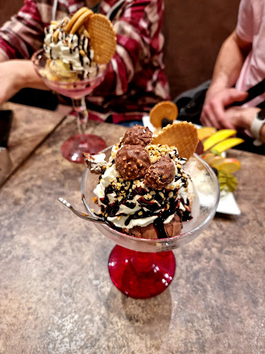 Kein Wunder dass diese Eisdiele vor kurzem bis auf weiteres geschlossen war wegen wenig Kundschaft. Bei diesem Personal kein wunder. Das sind aggressive verbittterte Menschen die unfreundlich sind.