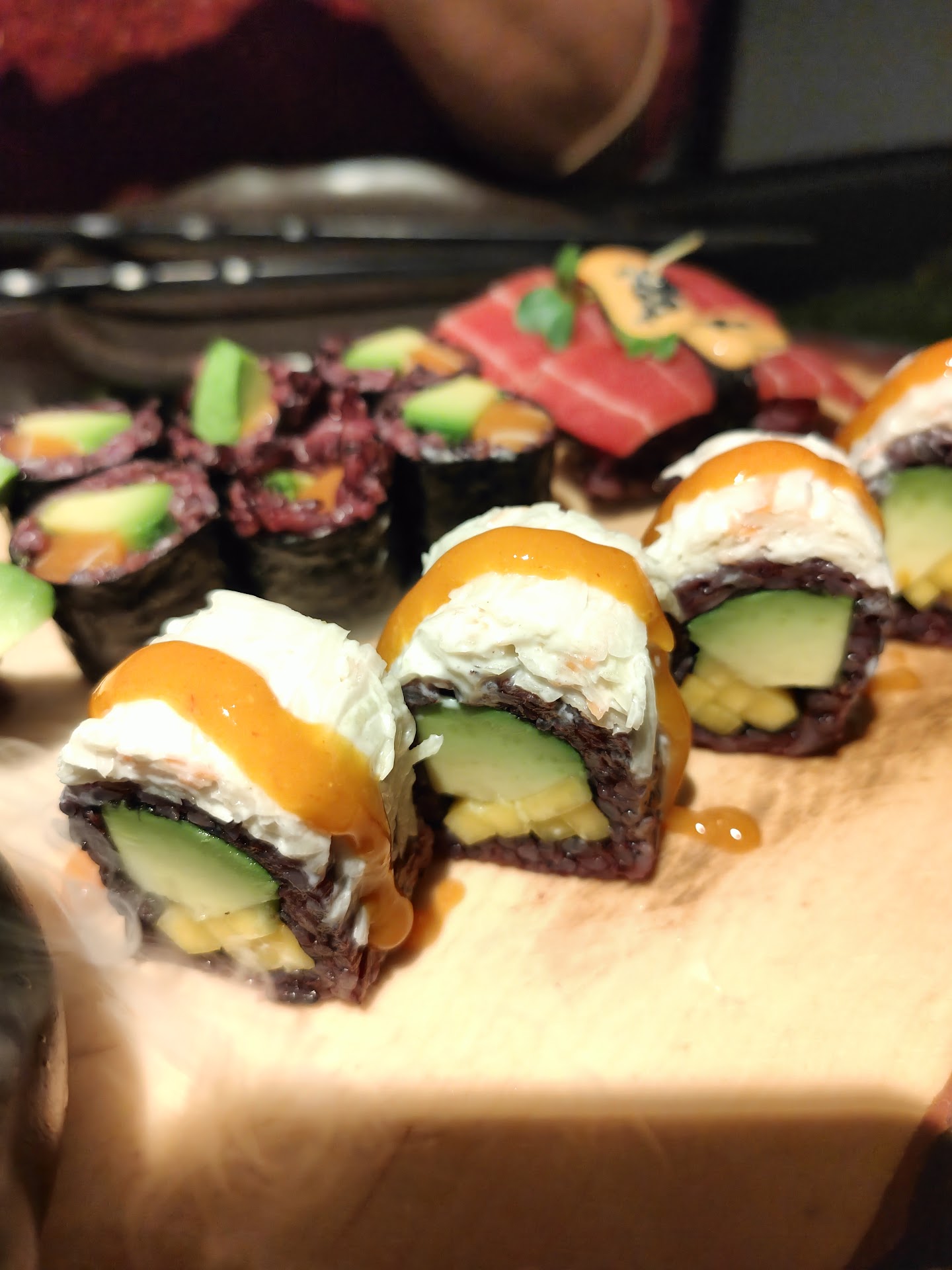 Regarding food, each dish was a flavorful, bursting with vibrant colors, and textures. Some of the ingredients used were clearly there to imitate the fish you would usually find, and I must say, I have no clue what I was eating, but they were as satisfying as traditional...