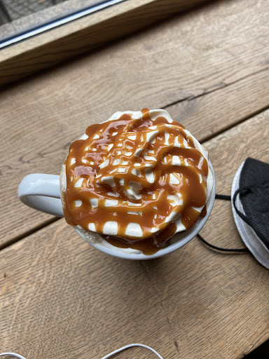 good download speed // WiFi (sometimes its lagging) vegan options its a chain but definitely better than Starbucks, Fellows and Co. Enough space // even though it can be very crowded. Love the high and slim booth tables free tap water (idk if its filtered tho) bonus program (discount for anything you are getting there) people working there are just super NICE all the time!