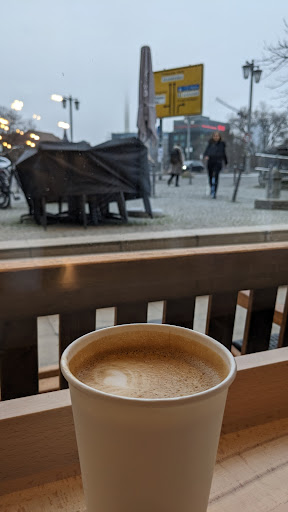 Read moreWe came for a good reviews but were disappointed. Good: the view, big windows, near the transport. Bad: dry, not fresh desserts without taste; the toilet is closed, you have to go down to ASK for a key (why must I tell the barista when I need to use bathroom?!), however the toilet is on the 1 EG and each has two cabins, but one key. There are no high load of people around. Then, you have to go down and up to serviere your order and then clean your table. No service. The coffee taste is... middle. Not bad not great. Prices are regular for Berlin or even a...
