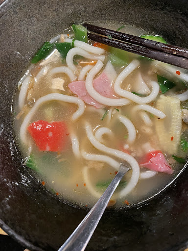 so overpriced for nothing! my boyfriend and i went there today and i got a duck ramen, which was alright, nothing special, but okay. my boyfriend got the seafood udon soup and it was the worst thing you could expect, i've never seen anything like that. this "seafood" soup that costs about 12€ came full of imitation crab... for 12€...... it also got kind of messy because of the broth temperature.. and some sort of dry mini shrimp... the worst! the waitress refused to get us something instead of this disaster of a dish. also members of the stuff walking through the front door in and out right in front of guests in order to throw smelly trash out. overall: the worst dining experience i've ever had in berlin p.s. just look at the photos and tell me honestly you would pay...