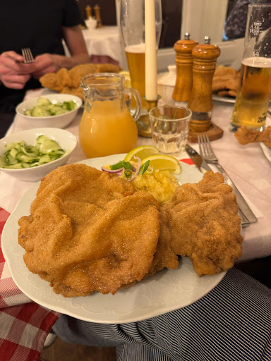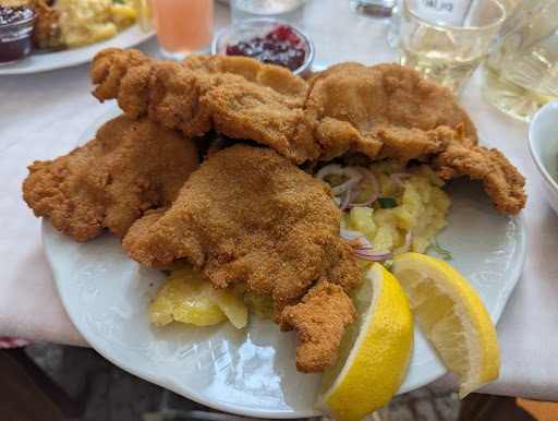 Absolutely top quality schnitzel! This is one of the very few places where I prefer the veal schnitzel over the pork! We came on a warm day so were able to sit outside by the bike path. Note that you'll get lots of bikers zipping by during your meal if you opt for the outer row of tables! The service was friendly and recommended some dishes to my date when she struggled to order something different from my standard Schnitzel. Alas, she ultimately opted for the Schweineschnitzel and I got the Kalbschnitzel, both with Preiselbeeren of course. When the waiter brought it out, I was blown away by the portion size! I did opt for the large portion while my date got the small, but I didn't realize how large it would actually be! Very surprising, given the quality and price. Anyway, I gobbled the entire thing up because it was fantastic and was absolutely stuffed. However, I couldn't say no to my favorite dessert -- Kaiserschmarrn, which they make fresh so it takes around 20m to prepare. I will say that it wasn't my favorite take on the plum sauce, but I still shoveled it in and finished the whole thing. Overall, I'd definitely come back here for the top-tier food quality and maybe try some of their other entrees. Maybe I'll see you there....