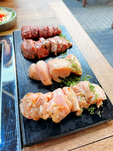 People working there are really nice and friendly. This is the only good comment that I can say about this place. I was there with five friends and four of us ordered a special combo for four people that includes meat (main meal), eight side dishes (two each person), dessert and raki (turkish spirit) plus we ordered a bottle of red wine to share with the other two friends. Basically I paid 35 euro for having a quantity of meat that we had to cook by ourself on a grill on our table and this wasn't enough for two people when it supposed to be for four. We literally ate three cubes of meat each person plus we shared two chops in four, both chops were more bones than meat. The desssert at the end was pathetic...a dish with a small ball of vanilla ice cream in the middle with four spoons (no sorry six...in case we wanted to share that little ball also with the other two). We went out and we literally smelt a lot of grill. The day after I didn't feel good and another friend also had problems with stomach. Also the other two who ordered different things complained about their food. Definetly a place to avoid and also the worst where I have ever been in Berlin. It was like been robbed wit a shotgun for 35 euros. Guys...turkish community is the largest in Berlin and the city is crowded of REAL Turkish bbq where you get a lot of very good meat paying between 10 and 15 euro and some also 6 or 7. PROPER Turkish bbq are something different..this looks like more a place that pretend to give you a kind of turkish food with hype/hipster vibes. In according with our experience deifnetly it's a...