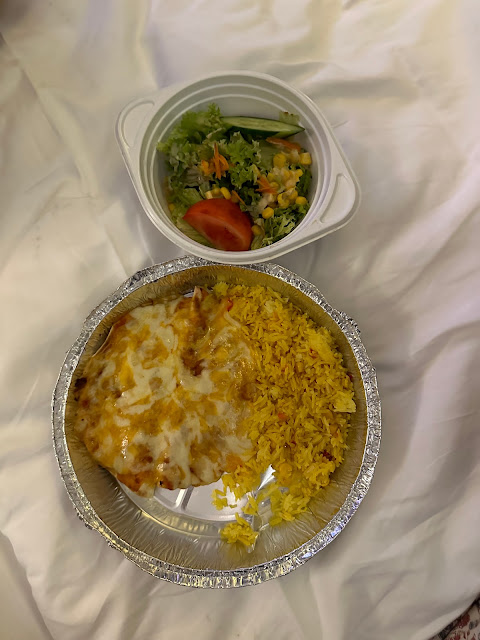 I have no idea if this is a hotel. It was only a restaurant that I could see. It saddens me to write this review because I normally like to support unique restaurants. Positive: the service was fast and kind Negatives: so many unfortunately. My order was takeaway so maybe they cared less. Prices were silly high. See photo. This cost me 15.50€ I got the vegetarian chimichangas- not chimichangas two small flour tortillas with a salty spinach filling (imagine frozen spinach with too much salt microwaved and put in a soggy chewy tortilla… Maybe the tortilla was also microwaved) then sprinkled with cheese on the outside and top heated a couple minutes. I was so hungry I ate one, but could not eat the other. The rice on the side was tasty except the hair in my second bite. Ugh. The side salad was a grocery store mix and included wilted produce. This was a major disappointment and a...