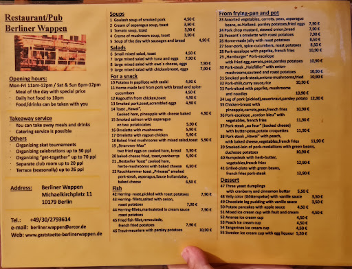 Picture this: We are a lesbian couple lost in Berlin. We are poor, and also extremely cold because of the heavy wind on this chilly February evening. We are desperately looking for a place to eat, particularly craving some schnitzel. Suddenly, we come across this place which, at first sight, doesn’t seem like the best of what Berlin has to offer. We were, admittedly, initially intimidated. However, the highly competitive prices and excessive amount of old people inside managed to convince us, so we entered. Verdict: ALWAYS DO WHAT YOU ARE SCARED OF !!! Entering almost feels like you are intruding into a wholesome german family enjoying their home cooked dinner. The waiter/barman/possible cook is polite, and had the kindest crystal blue eyes i have ever seen. It felt like I could tell him my deepest secret and he would keep it safe. In reality I only told him my order (Hungarian schnitzel with fries), but the depth of our connection was still there. The vibe of the place is hypnotically german, which was what we were looking for. The outstanding amount of people over 75 all around us really made the atmosphere feel electric. The food was delicious, the portion was great, the price was amazing. We learnt to ALWAYS trust the preferences of elderly german people. Would definitely recommend 100%....