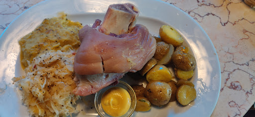 I normally don't eat pork: I don't like the smell of it. However, I've tried both types of pork knees, Haxe and Eisbein, and it was outstanding! Haxe has more flavour to it, but Eisbein is just so soft and tender. It literally melts in your mouth. You don't need a knife to cut it. Both garnishes were also really good. I would recommend ordering some red wine to complement the taste, especially for Eisbein.