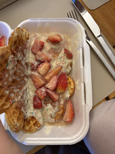 Besuch Nr. 1 Wir waren zu dritt das erste Mal dort. Wir haben zwei Waffeln und einen Shake bestellt. Die Bestellung hat etwas länger gedauert, aber die Waffeln waren extrem lecker und der Shake der leckerste den ich jemals getrunken habe!! Der Laden ist nach meinem Geschmack sehr schön und gemütlich eingerichtet. Man kann auch gerne Mal etwas mehr Zeit dort verbringen. Zu dem Eis kann ich vorerst nichts sagen. Aber wir werden auf jeden Fall...