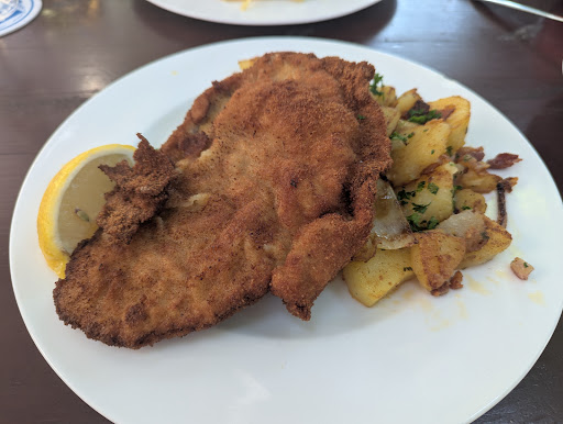 A delightful traditional Schwäbisch restaurant in Friedenau. We stopped by for a very early (4:30pm) dinner so there was plenty of seating inside and out. We opted for the wonderful Biergarten patio area in front to enjoy the rare Berlin sunshine. The service was very attentive and took our drink orders immediately which was nice because we were parched. To eat, I ordered the Tellerschnitzel and my date got the Schweineschnitzel "Jäger Art". They both came with side salads, which were surprisingly tasty. The Tellerschnitzel was also great, though I wish it came with some kind of sauce/dip (i.e. Preiselbeeren). I also tried a few bites of my date's dish and was again pleasantly surprised. Jägerschnitzel is not easy to do well, but they nailed it! Especially with the mushrooms and Schwäbischer Spätzle, 👌. I think we would have enjoyed the atmosphere more but they were restocking the Keller so it was pretty noisy with workmen coming and going. Despite that, we felt like we were in the heart of Schwaben with German being spoken all around us, which was great and a rare treat in Berlin! All around a great experience that I hope to have more of at other traditional German spots around the...