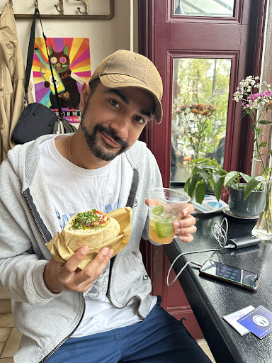 My boyfriend, Nikil, and I were passing through Berlin for an extended long weekend a couple of weeks ago, and we stumbled upon this beautiful sabich shop. It was my first time having sabich and I only want to have it from Goldadelux again. It is situated in such a beautiful and quaint location with cobblestone streets and a parkette across the street. With a line down the block and not letting up, if there’s anything we’ve learned from our time in Berlin it’s that if a restaurant has a line, it’s for a good reason! And we were very right. This sabich shop is the epitome of doing one thing and doing it RIGHT. The ingredients were all so fresh and the flavour profile was incredible. They somehow mastered a sabich that is perfectly balanced between freshness, spice and slight smokiness somewhere? My tastebuds were dancing and my tail was wagging - but that could also be because of the dope tunes the owner was playing :) we were lucky enough that the two window-seats opened up inside but there were also plenty of picnic tables directly outside or even park benches just across the street that varying groups of family and friends were crowding around happily. OH! We also tried the Gozoza soda and it was so lovely. We cannot wait...