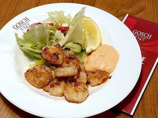 Hatten eine Stunde Aufenthalt und fanden Platz bei diesem bekannten Anbieter von Fischgerichten, der ja eigentlich im Volksmund für höchste Qualität steht. Das Personal ist freundlich. Da ich keinen großen Hunger hatte, aber ein Suppenliebhaber bin, wollte ich mir für 7,00€ die Fischsuppe bestellen. Mann gönnt sich ja sonst nichts. Erst bekam ich aber zu hören, die Suppe wird frisch zubereitet und der Koch besorgt gerade Ware aus dem Lager. Kein Problem, der Laden öffnete um 10.00 Uhr und es war 10 min vor der Zeit. Dann sah ich irgend wann den Koch kommen und wunderte mich schon das er aus einem Karton eingeschweißte fertige Kartoffelscheiben auspackte, wahrscheinlich für die Bratkartoffeln. Aber wenn die Qualität stimmt, warum nicht. Nun war ich an der Reihe und wiederholte meine Bestellung bei dem Koch. Er setzte ein Pfanne auf und gab Tiefgefrorenes Gemüse hinein um es anzuschwitzen!! Frische Zutaten habe ich mir eigentlich anders vorgestellt. Er sagte mir, ich könne mich ruhig hinsetzen er wird mir die Suppe wenn Sie fertig zum Tisch bringen. Konnte leider deshalb auch nicht sehen welche Zutaten er noch in die Suppe tat. Leider hatte diese Suppe überhaupt nichts mit der so hoch gelobten "Gosch" Qualität zu tun. Sie war total salzig und überwürzt, als ob ein Instant-pulver(von einem bekannten Hersteller) verwand wurde. Auch die Fischbrötchen(Bismarckhering z.B. 4,00€)die in der Auslage lagen, sahen nicht gerade Appetitlich aus. Fazit: Es gibt viele Anbieter die weit aus bessere Qualität zu einem angemessenen Preis bieten. Ist meine Erfahrung aus meinem Ersten Besuch bei "Gosch", von dem Viele sagen da muss man hin. Ich erstmal nicht wieder!