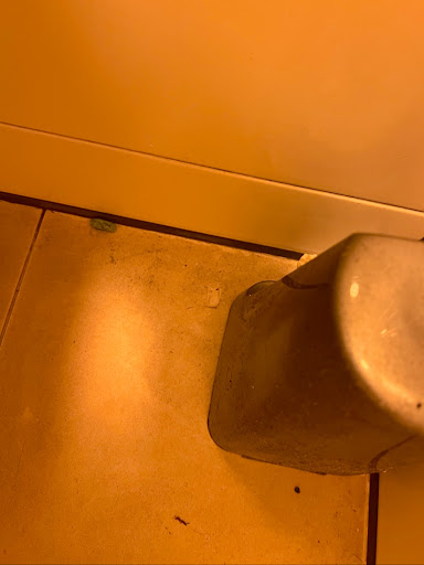 Ein blauer Kaugummi, auf dem Herren WC lag für mich sichtbar an zwei besuchen innerhalb von 11 Tagen immer noch neben der WC Bürste. Siehe Foto.