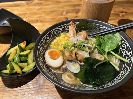 Read moreI don't like to give bad reviews and also I had just one bowl, so maybe I was just unlucky. My miso tonkotsu was really blunt, I was expecting more punchy present of miso tare, higher salinity and more complex flavour. This bowl left in me an impression like the soup was diluted. Noodles was fine, surprising was ajitama with traces of five spice in marinade, I am not sure if I like combination of cinnamon and egg, but it was something new. Pork belly chashu remains me fried bacon flavoured with shoyu and mirin. Wakame and corn are not necessary here, to say politely. I really liked the shop design and atmosphere, also service was...
