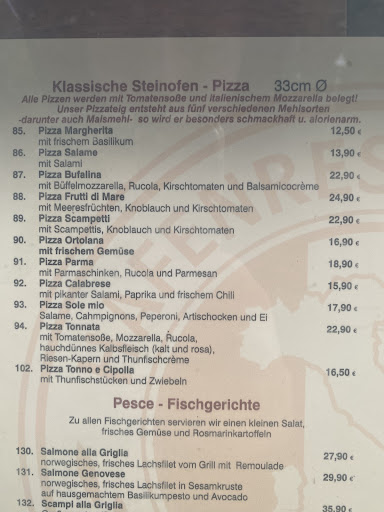 Die Medaillons vom argentinischen Rind waren zäh und unzureichend gewürzt. Die Großgarnele hatte eine wabbelige Konsistenz (39,90€), und auch die der Linguine Scampetti (22,90€) war nicht besser. Das Schnitzel war mit einer sehr harten Panade versehen, und der Spargel war geschmacklos. Ein Lichtblick waren die Linguine, die sehr gut gewürzt waren mit reichlich Knoblauch, Rosmarinzweigen und einem Lorbeerblatt.