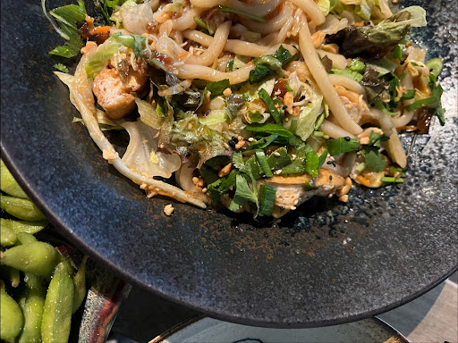 Dishes (- negative / = ok / + positive): pho with beef: the broth is well-seasoned and tasty, the noodles are fine and beef is ok, it could be more tender udon noodles with tamarind peanut sauce: well-seasoned tasty and fresh dish with good udon noodles