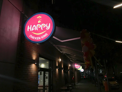 Read moreHappy Chicken King... ? Ob hier ein Hähnchen jemals happy war, wage ich zu bezweifeln. Meines jedensfalls nicht. Ich hatte den Happy Chicken Teller und ich muss als absoluter Fleischesser sagen, dass mir der Salat und das dazugereichte Brot am Besten geschmeckt haben. Der Hauptakteur, das traurige Hähnchen war frittiert und derart trocken, dass ich es nicht aufessen konnte. Die Pommes war gerade so ok, der Hummus völlig geschmacksneutral und der Knoblauch fehlte völlig. Zu dem Preis wurde ich satt, aber definitiv nicht happy. Ich habe mich hier wohl von den "guten Bewertungen" verleiten lassen. Bei nochmaligen Hinsehen fällt hier aber unangenehm auf, dass die 5-Sterne-Bewertungen sich im Wortlaut ziemlich ähnlich sind und zudem der Schreibende auch immer nur 1 (!) Rezession verfasst hat. Und dann ausgerechnet hier? Ein Schelm, wer böses dabei denkt. Sadly...