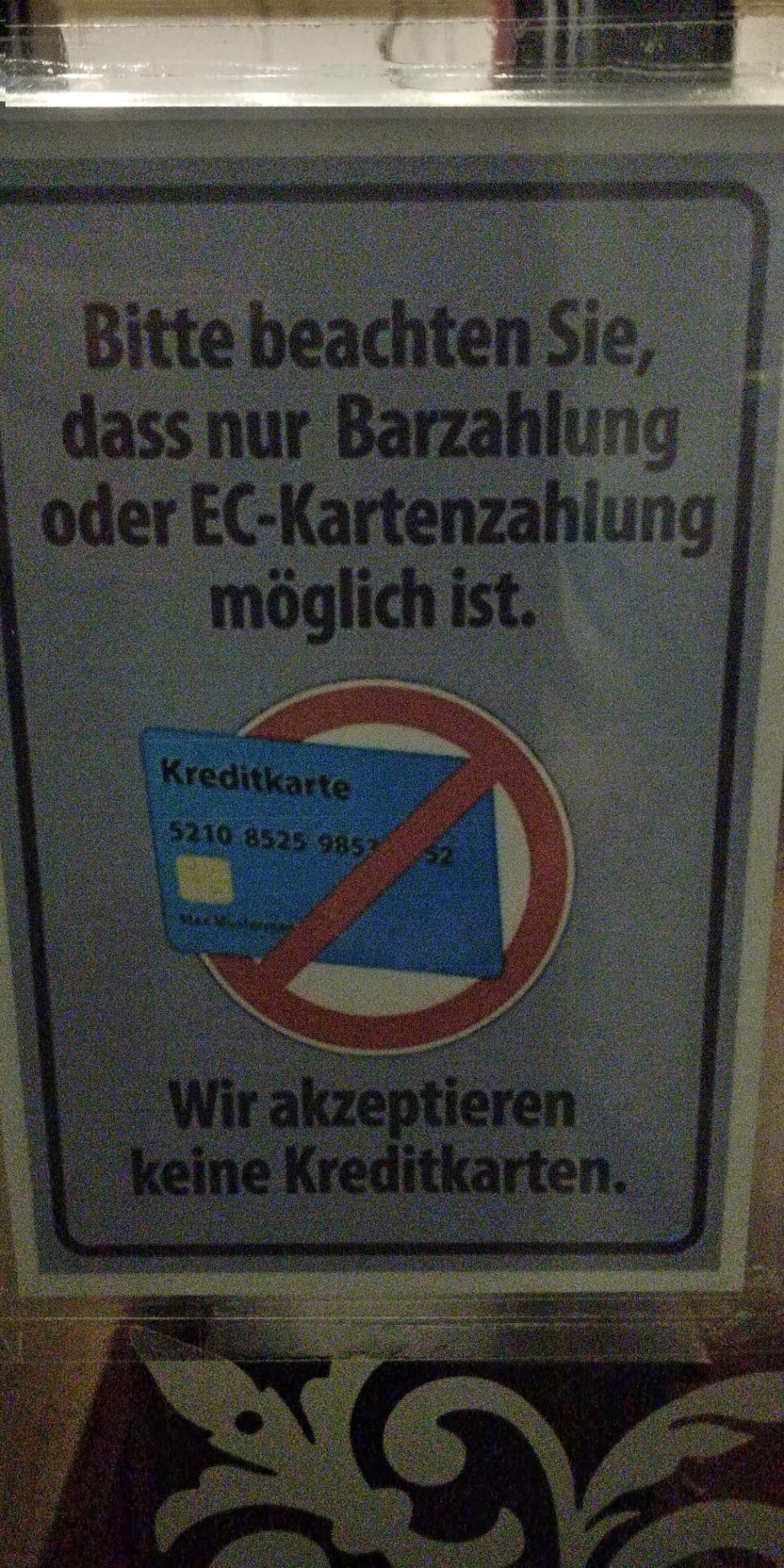 Ps the sticker on the door (in German, see the picture) just says "Please note that only cash or EC card payments are possible, we do not accept credit cards". Nothing is written about...