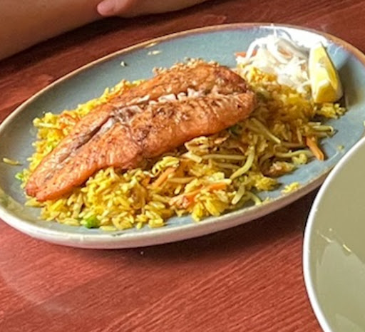 I’ve ordered Fried rice with salmon for 14,50€. I have to say maybe that day they ran out of salmon or the cook wasn’t in a mood (that kind of thing can happen), but the rice was very dry, the oil they used tasted awful (like old socks or so 😅😅) the portion of salmon was as you can see on the picture 2 thin stripes over roasted.