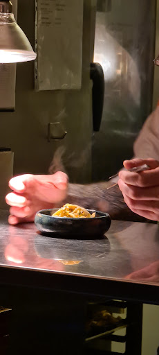 The Pork tartare with fermented apple and chili was just pristine, paired with a beautiful slightly prickly orange wine (Tragolargo Blanco 2021, Finca Casa Balaguer, from Alicante, Spain) that complimented the tingling sensation of the chili very well. Huge melt-in-your-mouth factor here, too.