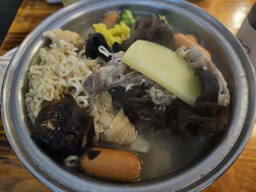 Once you are able to get in, service is swift and no-bullshit (which we appreciated) and the hot pot was pretty good: the ingredients were fresh and diverse and you really get your money's worth if you pack your bowl to the brim. The "non spicy" broth was a bit bland in our opinion and could have had more intense and complex flavors. The presentation in single servings was pleasing.
