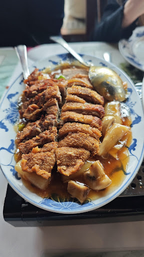 We reserved a table for a party of 6 early in the evening on a Saturday. Given the time it was not to crowded. Ordering food took a little while because the staff was busy. But that's okay because you have time to admire the variety of fish they have in several tanks. Of course they are not for consumption. The food was served on little stoves to keep it warm. We ordered little portions of every meal and it was still enough. The duck I had was delicious. I wouldn't order the fried noodles again because they had a charred taste and were dripping with fat. In the end we got a whole bottle of plum whine on the house which was nice. Overall I would recommend...