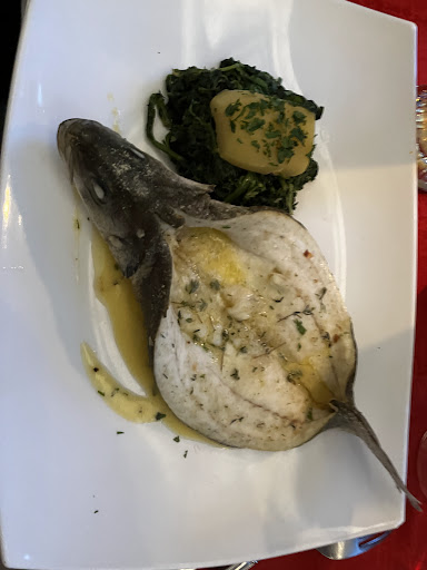 Ich habe mich für den gratinierten Loup de mer entschieden. Die Anrichteweise war ansprechend. Vom Prozess des gratinierens war nur leider nichts zu sehen, noch zu schmecken. Die Sauce, die als Spiegel unter dem Fisch angerichtet worden ist, war geschmacklich nahezu nicht zu spüren. Der Spinat war sehr gut. Es gab eine lieblos halbierte Kartoffel, die auf dem Spinat drapiert wurde.