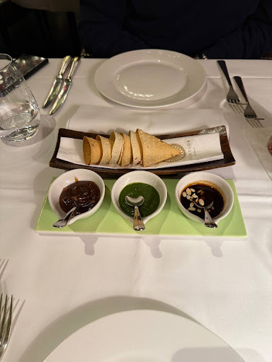 Read moreMy husband took me here for our anniversary. We arrived before 5pm but were welcomed in by the staff early in such a wonderful way. The décor is tasteful, attractive and comfortable. Our waiter was attentive, pleasant and knowledgeable. The cocktails are pricy but as they are creative and delicious, the high prices are worth-it. As we had arrived early, the restaurant was empty which was nice. Then, guests slowly started to arrive. I am from London, and we have fantastic Indian restaurants there and the UK in general, and I must say that this is the best Indian restaurant that I have been to in Germany. The food was delicious and vibrant with multi layered flavours; as Indian food should be, not simply an oily stew with a bit of curry powder thrown in, which is what is usually served up and called curry in Germany. We ordered the lamb chop with mint, the garlic naan bread, the fish curry with sticky rice and the royal blood cocktail, gin and tonic and another couple of cocktails. I have a few qualms though: the restaurant was almost empty, and we wanted to have a bit of privacy and not be at the restaurant when it was ram-packed, which is why we booked a table early. The staff though proceeded to seat a family with a baby right next to us when there were over twelve other tables for them to sit at. I have nothing against young families going out for dinner, however, when a child free couple goes out for an anniversary meal and the entire restaurant is almost empty, I really didn’t appreciate them squeezing us all together. It just did not make sense. That was quite annoying to be honest especially since it was a special anniversary meal, so if they could bear the seating in mind and giving guests a bit more space when the restaurant is not full in future, which would be a welcome improvement. I also did not spot any vegan options on the menu, nor could one by wine by the glass which was a shame. Other than that, the service was impeccable, and the little touches really meant a lot to me like them bringing me a handbag hanger without me even asking for it and a member of staff waiting for us with our coats by the door after we...