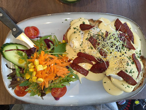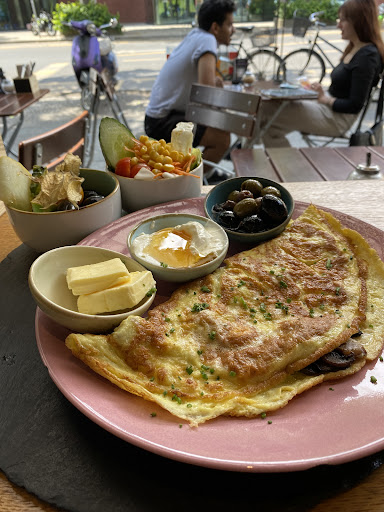 Read moreA really lovely place with good quality food, and big portions too. I stayed in Berlin for a few days not far from here and was so glad to have found this gem. I came here for a brunch one a.m. and returned a second time too. I have tried their omelette that came with home made bread, butter, olives, salad and a little bowl of yoghurt with honey and fruits. It was delicious! The second time i went for the egg benedict, which also came with a little bowl of fruits. The waitress at my first visit was clearly the heart and soul of the place (maybe even owner). The waiter at my second visit was a lovely fellow training a new waitress with so much care and precision. It all just left me with good vibes! I also ordered café latte which was for my taste a bit too big (too much milk, but this just compared to what i m used to in prague so might be cultural), but overall ok. Oh they have both inside and outdoor seating. And a fun little button you can press when you are ready...