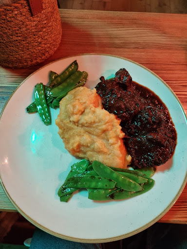 The schnitzel was a big and well tendered with a buttery taste. The sides, oven baked veggies soft with a bit crunch left. Perfect! The Gulasch was in a rich sauce, musty and packed with tastes from mushrooms and other veggies, very generous with big pieces of meat, the mash was rustical but silky at the same time. The Gulasch portion was so big that it was a decent lunch box for tomorrow to bring in nice boxing home.