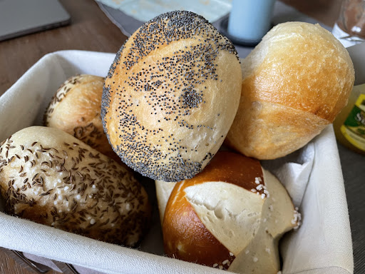 Very mediocre bakery. Good bakers are extremely rare in Berlin, as opposed to other parts of Germany, hence the overwhelming reviews and long lines on weekends. But there's nothing special about this place. Wide variety, but a lot of the same wheat-mulch under different names. The "Baguettebrötchen" and the grey "Steinofenbrot" are ok, we didn't like the rest and found everything quite pricy. Don't believe the "handmade" hype, too: this seems all based on industry-standard prefab mixes and tastes accordingly. Too bad that most people can't tell the difference anymore and get fooled by the old-world charm interior. For REALLY good bread, go down the road to the old museum-bakery, they offer handmade loafs done the traditional way. Shame they...