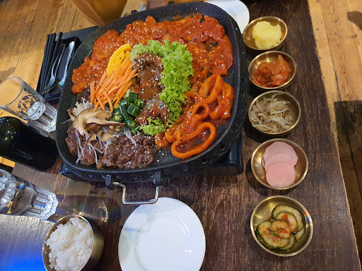 Long form: We reserved a table for 3, when we arrived we were asked to wait for 30 minutes then given a tiny table for 2. We had to wait for another 20 minutes until our order was taken. We kept being promised a bigger table while we waited for our order to arrive. When one of the waitresses finally joined another table to ours to give us more space, another waitress came and snatched it from us forcibly. Then she promised to move us to a bigger table, which never happened. We asked for our side dishes to be refilled, as it is stated on the menu that refills are free, but the refill never arrived even after we reminded another waitress of the issue. Once we finished eating our order we asked one of the waitresses to explain to us one of the orders of the neighboring tables since it looked really good, she only said the name of the dish in Korean without providing further explanation. When we asked for an explanation she shouted at us and used extremely unfriendly body language to show us the item on the menu. Then she left without taking our order, so we had to talk to another waitress to order the dish. After waiting for another 30 minutes our second order never arrived and our sides were never refilled. When we went to speak to the owner/manager, we realized that our bill included items we never ordered and he did not even offer us a discount to repay us for the terrible experience they gave us. Only go here if you want your dinner to be nightmarishly...
