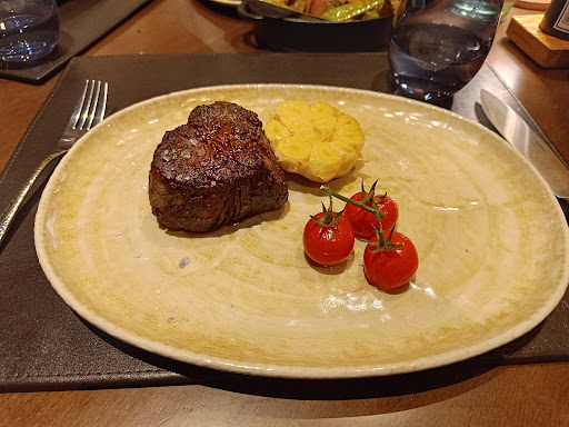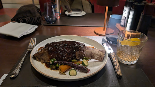 Great food and fantastic atmosphere, just like a Steakhouse should be. Big chairs and meat forward menus with high ceilings and the feel of fire and heat from the kitchen.