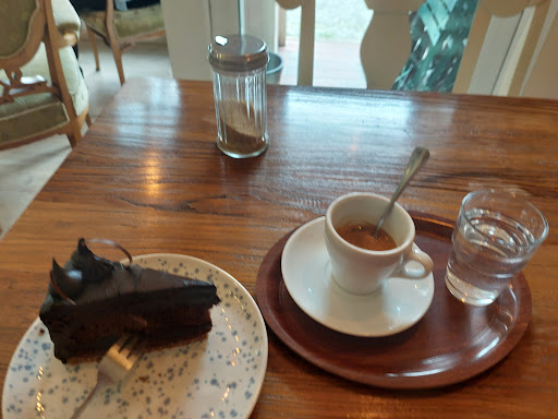 Completely for 9,1€ it's too nuch cost and isn't nice place enough!! For this price I got in Vinohrady (one very cost and higher area in Prague), where I life perfect Service in really high level Café!!! With perfect espresso, ristreto or doppio!!! Cake oly 4 till 5€, but much more better. I was so dissappointed on Thursday 31 July 17:15 till 17:58 (when he not nice Lady told me it's geschlossen).