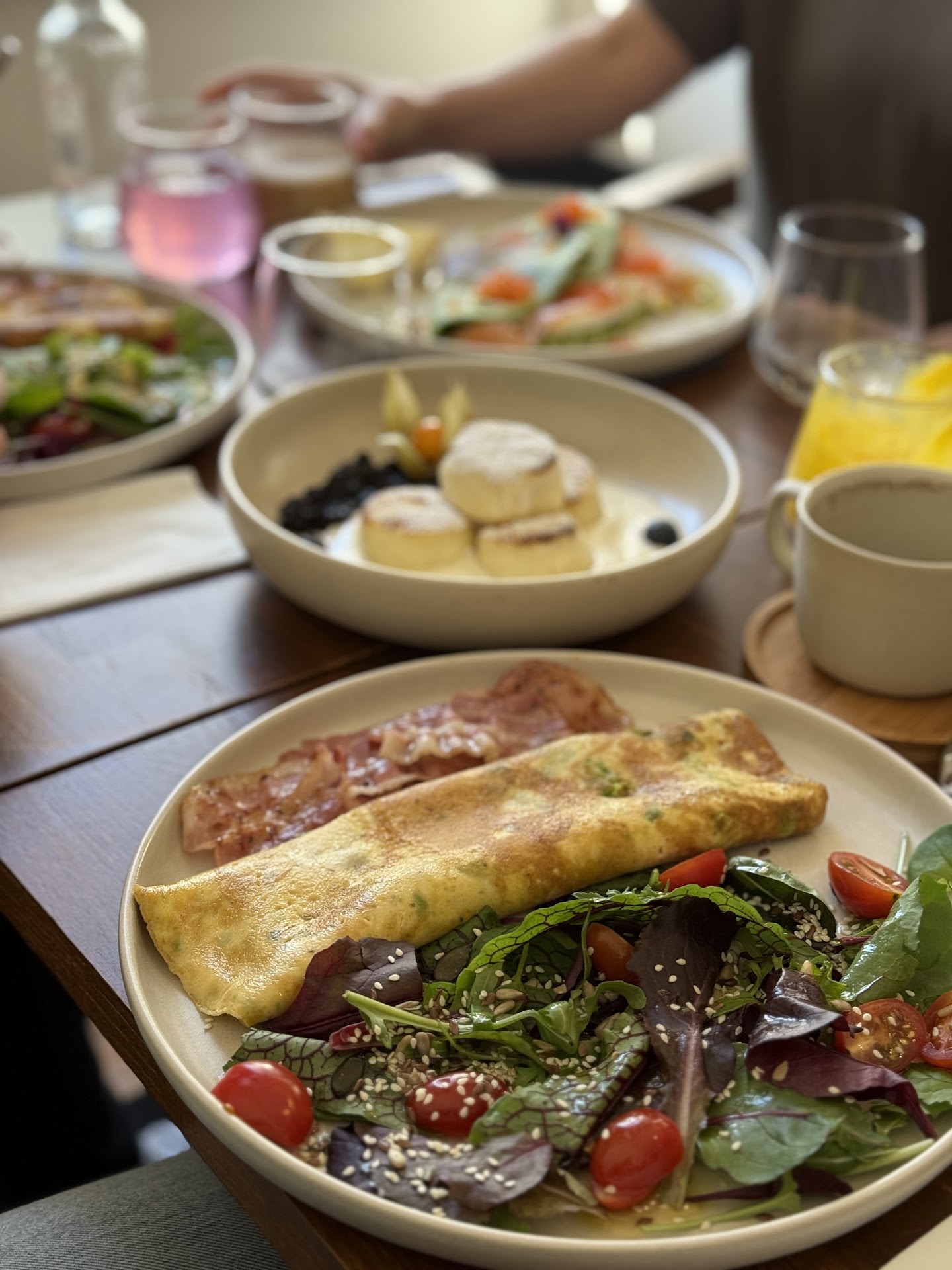 I came here after seeing good reviews but left very disappointed. I was served an undercooked omelette with raw egg inside. After asking the waiter to fix it, they just reheated the same omelette, which obviously didn’t solve the problem. I had to send it back again before a lady finally offered a replacement. They also advertise traditional Romanian papanasi, but the taste had nothing to do with the real thing. I even asked the waiter what kind of jam they were using, and she had no idea — she said she would find out and come back, but never did. Overall, very poor service and disappointing food. Definitely not a place I...