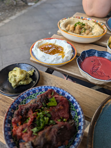Starter: The seasoned bread was nice but dry. Some of the dishes that we expected to be served warm arrived cold at the table. Unsure if it was supposed to be like that, but the grilled cauliflower, falafel and roasted potatoes would have been nice served warm. The potatoes were somewhat chewy and falafel was not moist like before, unfortunately dry. The hummus was lovely, like before, however served with much added tahini now which camouflaged the hummus flavour and made it somewhat bland.