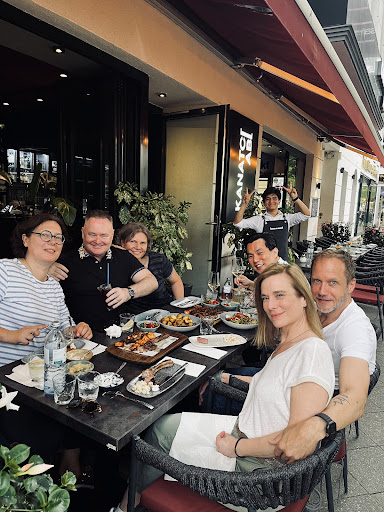 Very popular modern restaurant with an open kitchen. Nice looking staff, elegantly dressed. Warm welcome. I was seated at a small table. The cozy atmosphere suddenly changed: the bright spotlights went on ... they said it is automatic and would go off soon (but it did not!)... Families with cheerful children came in; the door was left open; so the icy wind blew in. My first impression of an elegant cozy restaurant turned into a Turkish bazaar. The menu is a bit confusing at first glance... several languages, unknown dishes... but the staff is very helpful. Looking around: every dish looks fabulous, plenty of food to share, very efficient professional kitchen... But, unfortunately, my visit remained short; I left after the appetizer because the atmosphere had become unbearable. Still the place is very recommendable and I suggest reserving a table beforehand, further from the front door, in the back...