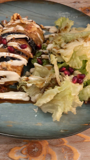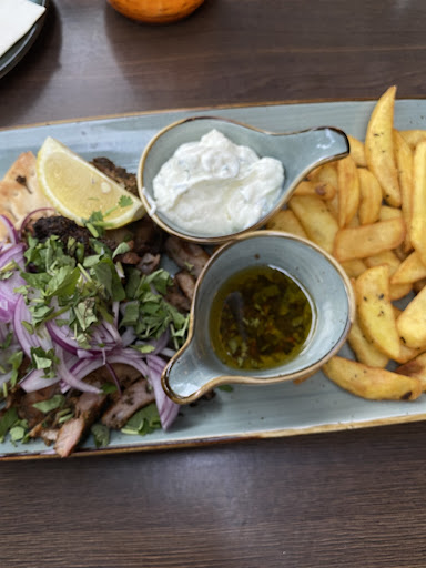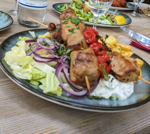 We were excited to try this restaurant with its unusual menu but were disappointed. First, the English version of the menu completely omits salads and soups which are only on the German menu. We were waited on by a young man who we assume was the owner's son because it seems as though he really did not want to be there. Wasn't warm or helpful and did not really seem to know the menu whereas the owner and her daughter(s) seemed to be much nicer. We ordered the dish of bread with tomato, pesto and feta but they were out of it which is strange. Ordered olives for the table which states "three kinds of olives" but it had only one green olive and many black olives (2 types) and pepperoncini, covered with fresh onions. We ordered triangles of dough that were supposed to have 3 different fillings for an appetizer but they were all the same. The fish, gyros, and moussaka were all fine. The eggplant stuffed with bulgur was excellent. The lentil soup was flavorless. It was...